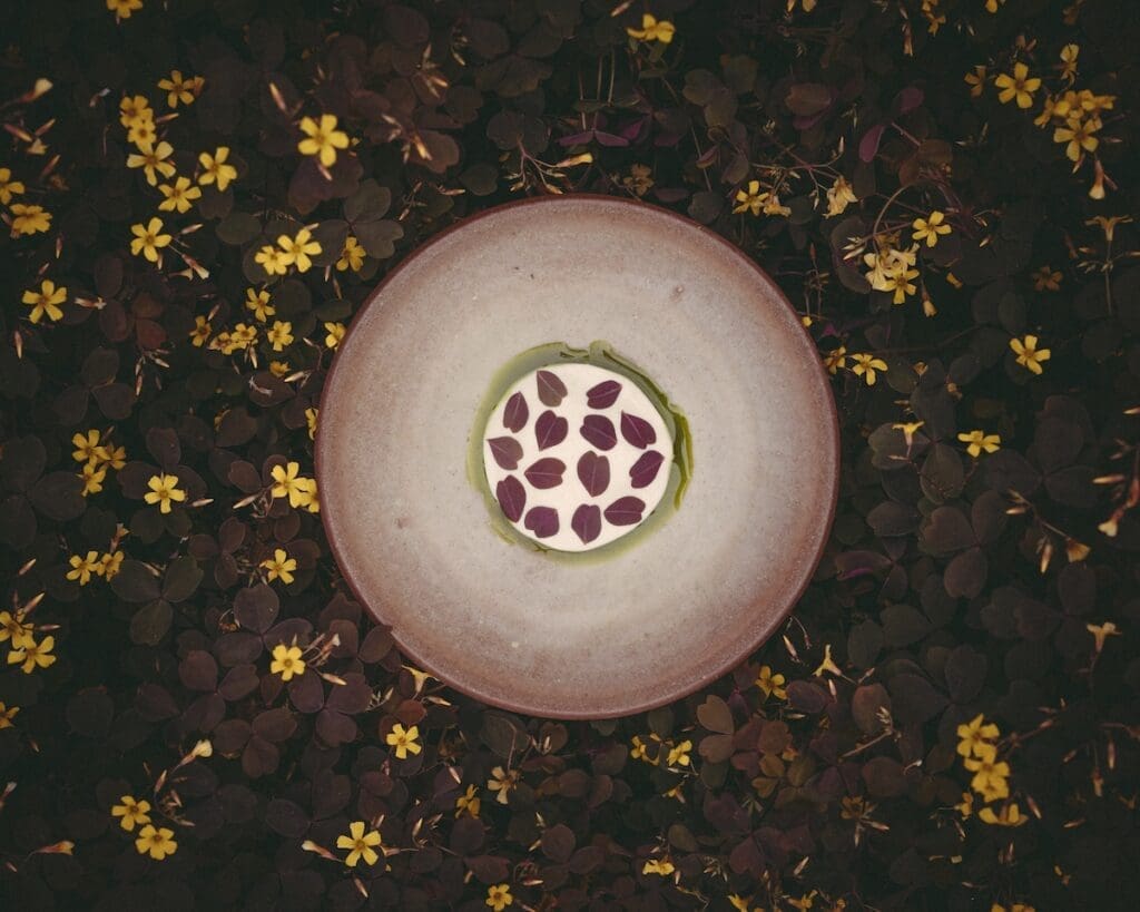 La cuisine d’Hugo s’ancre dans son territoire… Ce bout de Bretagne, lorgnant le Mont-Saint-Michel, ses marées affolées, ses sables infinis : « Ma carte, sans viande, où dominent coquillages, poissons, légumes, n’a de sens qu’à Cancale. C’est ce que j’explique à mes convives, les invitant, le temps d’un repas, à un voyage immobile. La dernière séquence de mes menus s’appelle Terre en vue. » Hugo et son épouse Marine, qui travaille à ses côtés, ont la plume poétique. Que cachent dans leurs menus « À l’abri des Flots » et « Au gré du vent et de la lune » des plats comme « Eau de vie », « Regarde le soleil » ou « Trésor oublié » ? Au Coquillage, le mystère participe au plaisir et trahit la sensibilité de ce chef nourri aux embruns, qui se frotte toujours aux éléments, du granit rude des rochers aux longues déferlantes : « Vivre au bord de la mer, depuis tout petit, l’admirer, la contempler, est une des choses les plus bouleversantes qui a forgé mes convictions, inspiré ma carte. Sans concession. »
