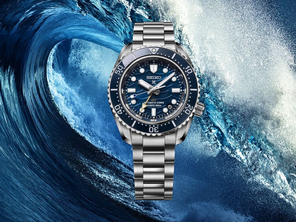 Pour les 60 ans de sa première montre de plongée, Seiko présente la Prospex SPB509, une superbe édition limitée à 6 000 exemplaires. Dotée d’un cadran bleu à motif de vagues, elle rend hommage au modèle de 1968. Équipée du calibre automatique 6R54 avec fonction GMT, elle offre une réserve de marche de 72 h et une étanchéité jusqu’à 300 m. Boîtier acier de 42 mm, lunette céramique bleue et bracelet ajustable. Prix : 1 900 €.