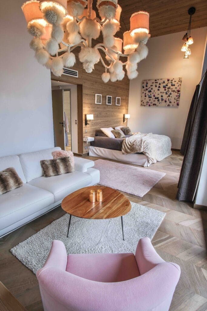 Unanimement salué comme une adresse d’exception, le Clos des Sens se tient sur une colline à Annecy-le-Vieux, dans un écrin végétal reposant. Si la notoriété du lieu s’appuie en priorité sur la qualité de la table, triplement étoilée, la partie hôtelière, labellisée Relais & Châteaux, est au diapason. Confidentialité, intimité et raffinement guident l’esprit de cette maison de 11 chambres seulement, dotées de terrasse ou de balcon. Parmi les marqueurs décoratifs, des tons et des matières inspirés de la nature – bois, brique, cuir, gris pierre – rehaussés de touches artisanales, pour sculpter une ambiance de chalet luxueux et hors du temps. Coup de cœur pour les deux chambres en soupente, avec charpente apparente et balnéothérapie. Côté jardin, la piscine offre un espace rafraîchissant en période estivale.