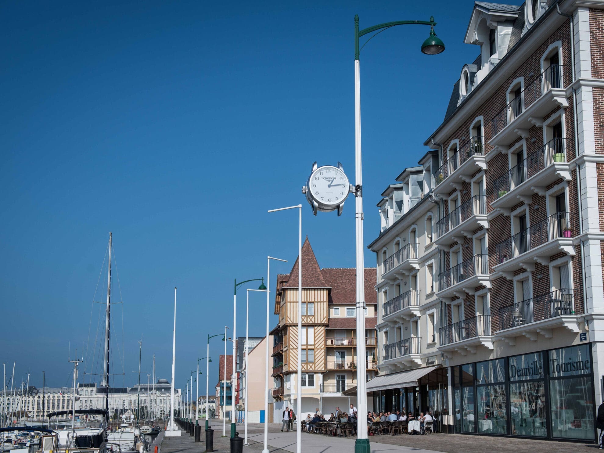 La marque horlogère suisse iconique entretient avec la ville balnéaire normande, dont elle est le partenaire officiel, une histoire particulière depuis 2018. L’emblématique promenade du bord de mer devant les fameuses Planches, qui fête cette année ses 100 ans, s’est notamment vue parée d’horloges Longines.