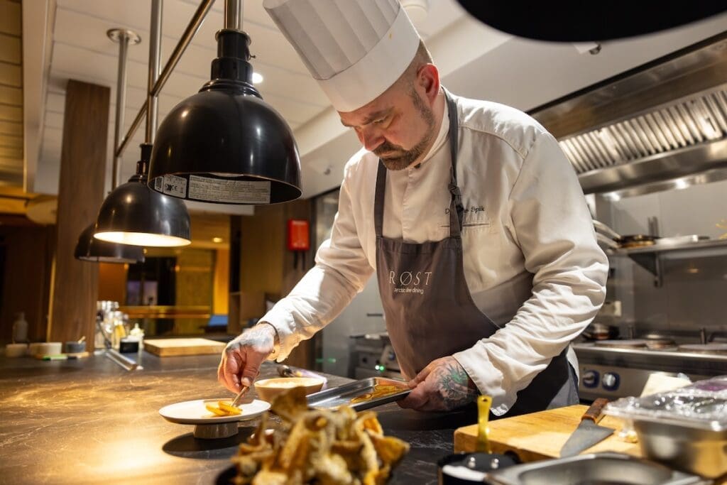 Même à bord, plat sophistiqué et dressage parfait. © Espen Mills