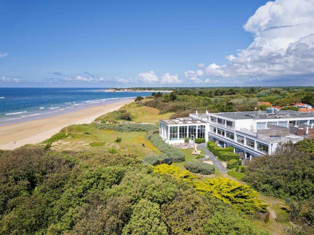 Qu’il porte bien son nom ! Niché au milieu d’une dune plantée d’arbustes, avec en arrière-plan l’immense plage de la Rémigeasse, cet hôtel atypique, édifié en 1965 par un disciple de Le Corbusier, ressemble à un navire en partance vers des horizons océaniques. Au Grand Large, 5-étoiles du groupe Le Boutique Hotels Collection depuis deux ans, les 31 chambres sont très lumineuses grâce à de grandes baies vitrées. Coup de cœur pour les suites Prestige Océan et la suite Panoramique pour leur vue plein cadre sur la dune et l’océan, comme un fond d’écran grandeur nature. Le vaste espace bien-être, avec sa piscine et son Jacuzzi, baigné de lumière, renforce la sensation de dépaysement. Le bar en rooftop porte la promesse de sublimes couchers de soleil. À La Table du Grand Large, on se régale d’une cuisine pescétarienne. « L’environnement sauvage est une source d’inspiration », justifie le chef MOF 2023 David Boyer, qui signe la carte interprétée par la jeune cheffe russe Marina Mikheeva.