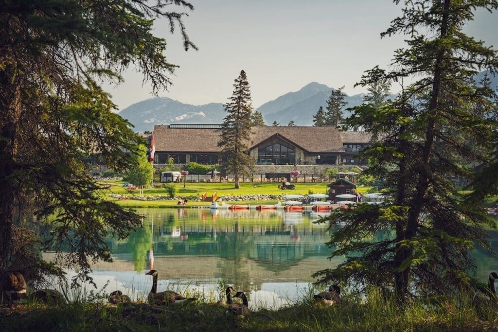 Dans le parc national de Jasper : hôtel emblématique, sur les rives du lac glaciaire Beauvert (ainsi nommé en hommage à l’éclat émeraude de ses eaux), le Fairmont Jasper Park Lodge a été ouvert en 1922 par la compagnie ferroviaire Canadian National Railway. Ses lodges en bois et pierre tournés vers le lac et cernés par la forêt composent un refuge nature haut de gamme, typiquement canadien. Plusieurs tables, un très grand spa, une piscine extérieure chauffée et un parcours de golf réputé, avec les montagnes autour.