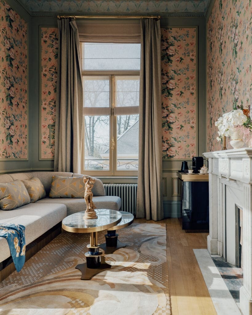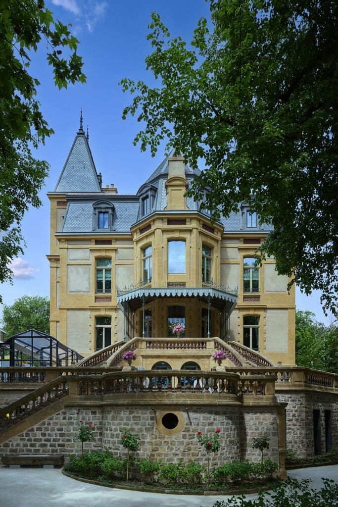 Avant de tracer la moindre esquisse, Tristan Auer, esthète, un rien dandy, recense tous les éléments encore en place : mobiliers, papiers peints à la main par Sosthène Weis d’origine, peintures utilisées au cours des années. Avec patience, il reconstitue le puzzle, retrouve des pièces disséminées, démontées, dont de superbes lustres que montrent les vieilles photos : « La Villa devenant hôtel, j’ai dû mener de front deux chantiers, l’un dans la demeure de maître avec ses codes, son existant à respecter, l’autre dans les communs avec davantage de liberté. »
