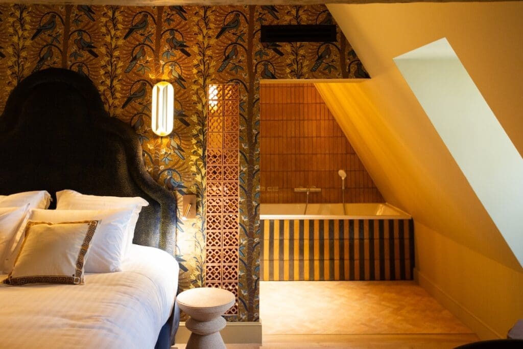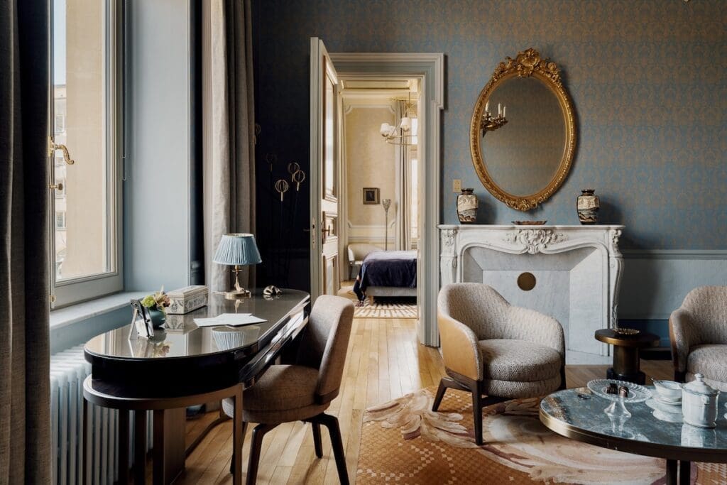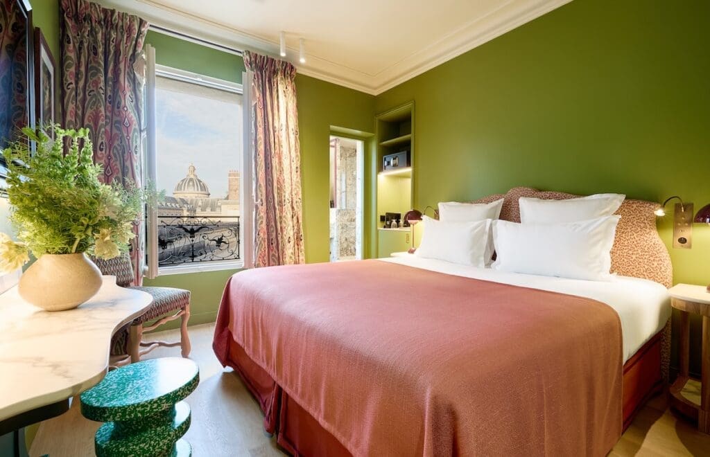 Alexandra et Julie Marang, les deux sœurs désormais à la tête de la collection hôtelière Paristory, rêvaient de posséder un établissement dans le vieux quartier historique de la Rive gauche. Elles l’ont déniché en traversant la Seine via le pont Neuf, rue Guénégaud. Une demeure particulière du siècle du Roi-Soleil, avec ses bosquets redessinés et plantés d’essences pérennes par Caroline Vandervort. Une poignée des 23 chambres ouvre sur ces espaces disposant au cœur de Paris d’un coin de verdure. À quelques pas du premier théâtre de Molière dont le prince de Conti fut l’un des mécènes. Ressusciter l’esprit de l’époque, des lieux et de ses personnages, tel est le but, pour transporter les hôtes dans ce Paris courtisan, avant qu’il ne file à Versailles.