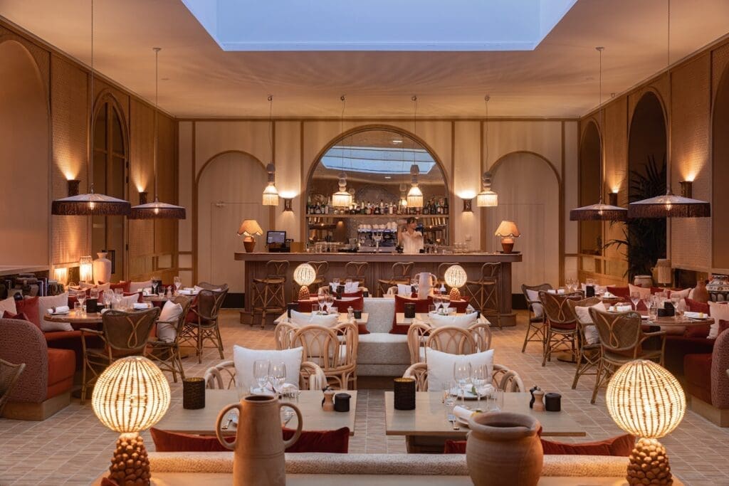 Rénové en quelques mois par l’atelier Gardera & Pastre, bien implanté dans le Sud-Ouest, le vieil hôtel défraîchi assume sa nouvelle identité hispanisante entre ses sols en terre cuite, ses objets artisanaux, chinés de l’autre côté de la frontière, ses couleurs ocre, bronze, mandarine et sa table du chef colombien Juan Arbelaez, maître ès braises. Ciel bleu, on file au golf ou contempler de plus près l’océan, voire le braver sur une planche de surf. Ciel grisonnant, direction le spa L:a Bruket, marque bio suédoise, pour cultiver sa forme, entre massages, piscine intérieure, sauna, hammam, studio fitness Technogym, ouvert jour et nuit. Envie de ville, fièvre acheteuse, on s’offre une escapade à Biarritz, moins de 4 kilomètres, à pied ou à bicyclette pour les plus sportifs. Avant de rentrer à la Maison, pour, au bar, savourer un cocktail signature, Basilswing, Pinafizz ou Maverick, accompagné de quelques tapas, empanadas, tiropita, piquillos. Histoire de se dépayser.