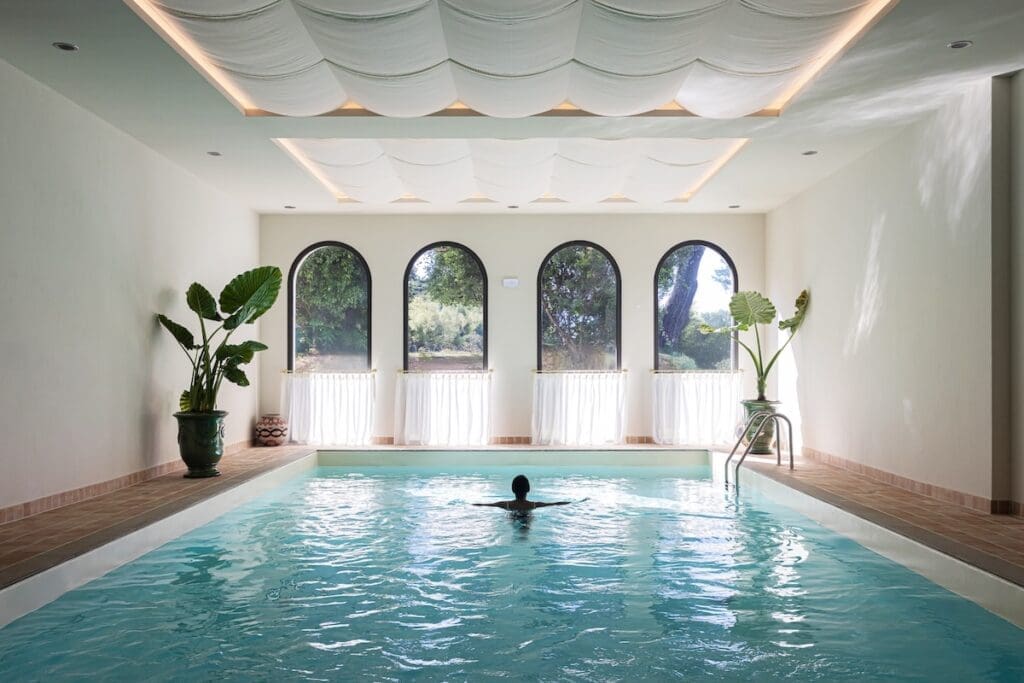Hyll réveille délicatement les murs endormis d’un manoir du XVIIe siècle à Charingworth, y logeant 8 chambres et 18 autres dans ses dépendances. Autour, un domaine de 24 hectares de bois, de prairies et de collines. D’ailleurs, « hyll » désigne en vieil anglais un lieu surélevé. Prendre de la hauteur, au sens figuré, c’est aussi l’objet d’un séjour dans ce lieu exquis et singulier. Aucune horloge en vue, téléphone éteint, ses hôtes deviennent les maîtres de leur programme. Ils sont invités à exprimer leurs envies d’oisiveté, relative ou totale, aidés dans leur choix par deux brochures illustrées, « Do something » (« Faire quelque chose ») et « Do nothing » (« Ne rien faire »). Quand certains partent explorer les environs, d’autres s’installent dans l’un des salons pour dévorer un livre ou jouer aux échecs, flânent autour des sculptures essaimées dans le parc, testent les séances de méditation guidées ou les bains sonores. Facile de se laisser porter par le sentiment de quiétude, de détente, lorsque la décoration intérieure elle-même adoucit le quotidien : lumières tamisées, couleurs terre, mobilier en bois patiné, rideaux en lin, lits de qualité premium… et que la cuisine servie sur place, locale, saine, simple et savoureuse, participe aussi de cette invitation au « slow living », à prendre son temps, l’esprit libre.