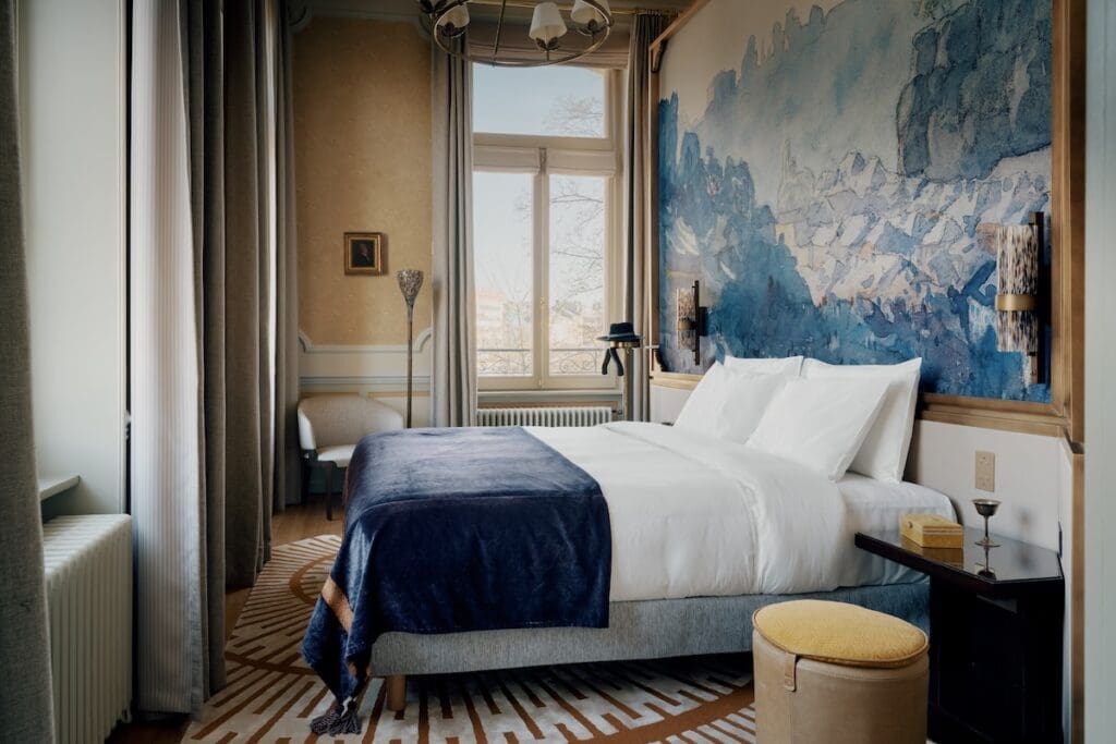 Avec Eric Allart, architecte d’intérieur, designer mais aussi antiquaire, les sœurs Marang s’en donnèrent à cœur joie, jonglant entre ambiance baroque, celle de ce siècle qui aimait tout sauf la sobriété, et une collection d’œuvres d’art. En un an, Eric Allart parvint à réunir une vingtaine de pièces certifiées, glanées sur les sites d’enchères en ligne, dans les galeries et les maisons de vente. Fier, entre autres, de son petit portrait de Molière du XVIIe siècle et du testament du prince de Conti acheté en Allemagne. Heureux d’avoir accroché dans le lobby le portrait de la duchesse Suzanne de Navailles, dame d’honneur de Marie-Thérèse d’Autriche, reine de France et de Navarre. Charmé par ladite dame, le roi força ses appartements. Elle sut le tenir à distance. Le lendemain, le roi trouva porte verrouillée. Ce qui valut à la duchesse dix ans de bannissement sur ses terres. Ainsi, en escaladant les étages, d’une pièce à l’autre, d’un tissu Pierre Frey à une photo style XVIIIe siècle du fleuriste photographe Harald Altmaier, l’histoire de Paris se raconte. « Cela vous étonne, si je vous confie que les Américains raffolent déjà du lieu. Aimant occuper, dans les étages supérieurs, les chambres avec vue sur la coupole de l’Institut de France et celles qui, ouvrant sur un même palier, peuvent, portes closes, composer un appartement privé, précise Julie Marang, propriétaire associée. Pratique pour les familles, de plus en plus nombreuses, à voyager, enfants, parents, et grands-parents. »