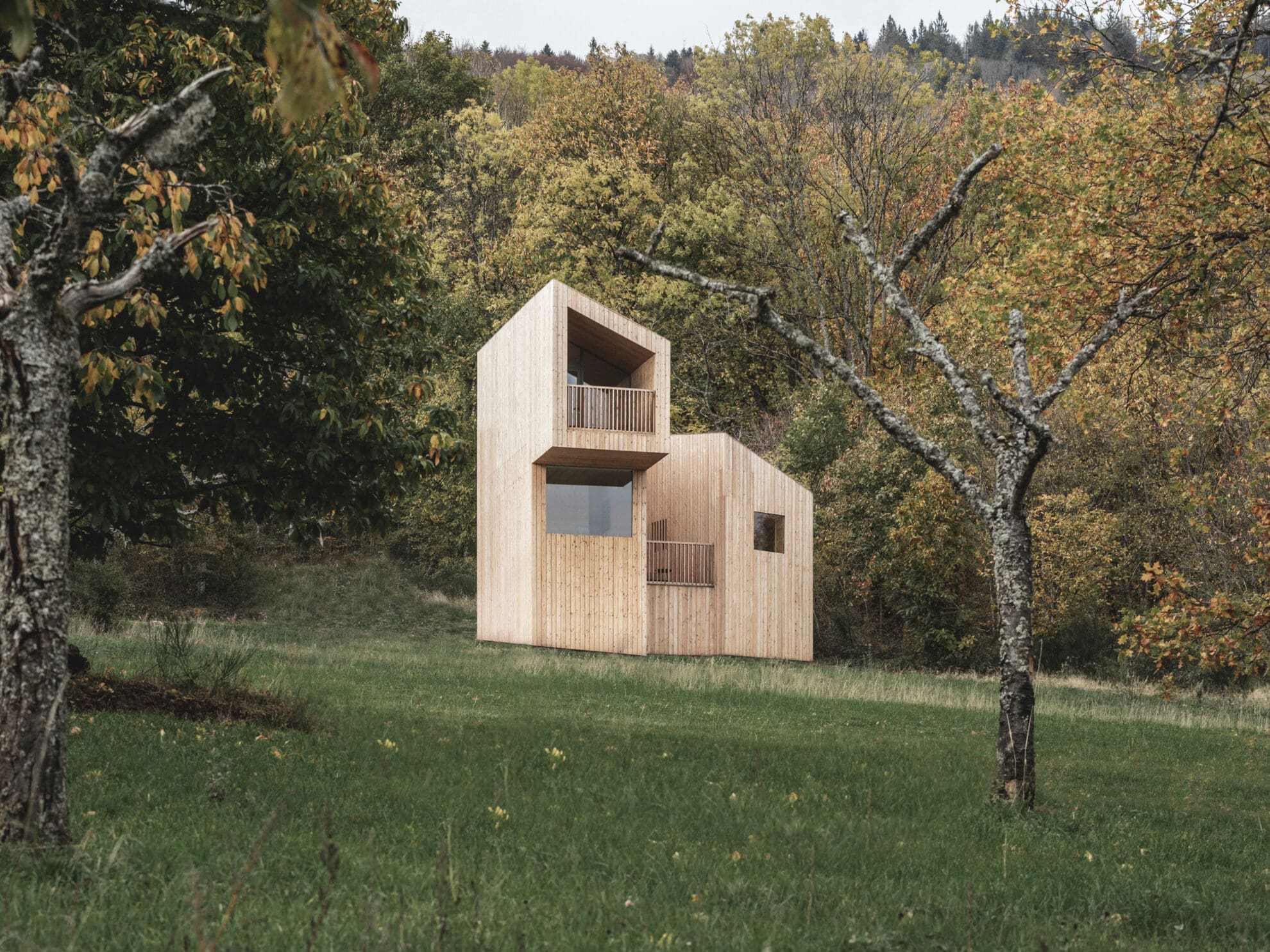Sur les hauteurs d’un village alsacien, dominé par les Vosges, cet ensemble de chalets d’inspiration nordique, en bois brut, se fond dans un site naturel protégé. Unique !
