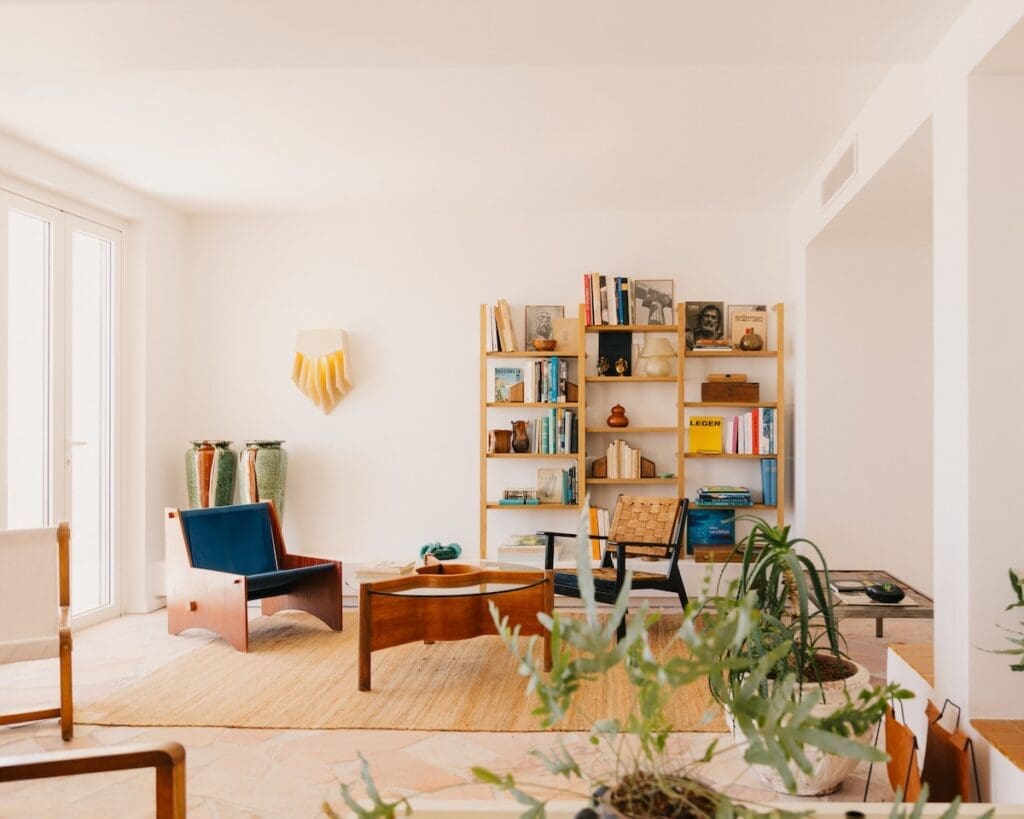 Dès l’entrée dans les 25 chambres (67 au total dans l’hôtel), la vue est captivante, époustouflante, sur cette Méditerranée à la fois tout près et étendue à l’infini, mais aussi sur l’île d’Or, si magnétique, et sur le massif de l’Estérel dont les roches rouges ont donné leur nom à l’hôtel. A.S.L a soigné l’effet « waouh ». La configuration des trois suites en angle donne même l’impression d’être sur un bateau qui s’avance dans la mer. Cette mer, encore, qui semble pénétrer dans les intérieurs, par touches bien pensées : aux murs, des cartes marines sur lesquelles Antoine Ricardou a dessiné des voiliers, ses photos personnelles prises au large, une suspension en céramique, œuvre de l’artiste Imori, de la forme des grosses chaînes qui traînent sur les quais, dans les ports. Dans chaque salle de bains, une œuvre en céramique de Juliette de Ferluc, dans laquelle elle fige la mer. Les meubles chinés côtoient ceux réalisés sur mesure. Le choix et le travail des matériaux, le rotin, les carreaux de terre cuite de rougeole, le béton quartzé au sol, le plâtre des moucharabiehs, témoignent d’un souci du détail, d’une quête du beau sans effet de style inutile. La mer rend humble.