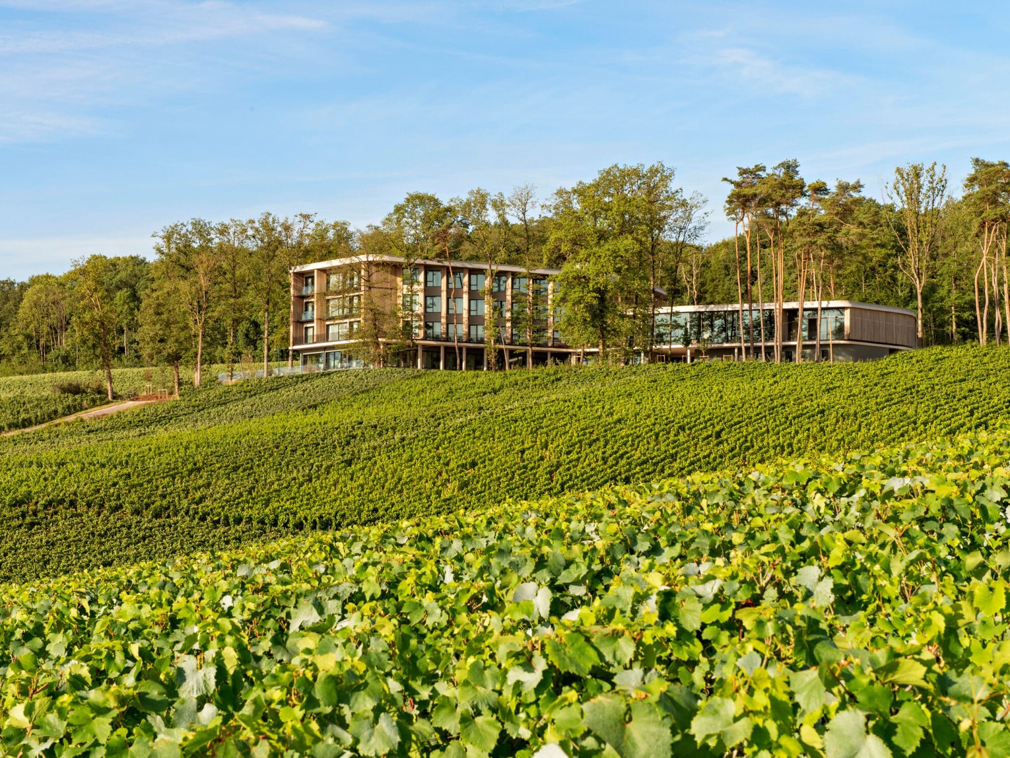 Le groupe d’œnotourisme autrichien Loisium a inauguré l’été dernier en Champagne, à dix minutes d’Épernay, son troisième opus, le premier en France, bientôt suivi d’un autre en Alsace. Il a dupliqué ici le même concept de resort design et chaleureux, en fusion avec son environnement. Chargés de l’architecture et de la décoration intérieure de ce 4-étoiles, Sanjit Manku et Patrick Jouin confirment : « Ce projet est né de la volonté d’offrir un hôtel niché dans la forêt, adossé au parc naturel de la Montagne de Reims, avec une vue sur les coteaux vallonnés. Le rapport au paysage a été au cœur de notre réflexion. Son architecture joue sur cette relation privilégiée à la végétation, par ses lignes sobres, sa transparence. C’est un lieu honnête, brut, en contraste avec le luxe que représente la dégustation du champagne. »