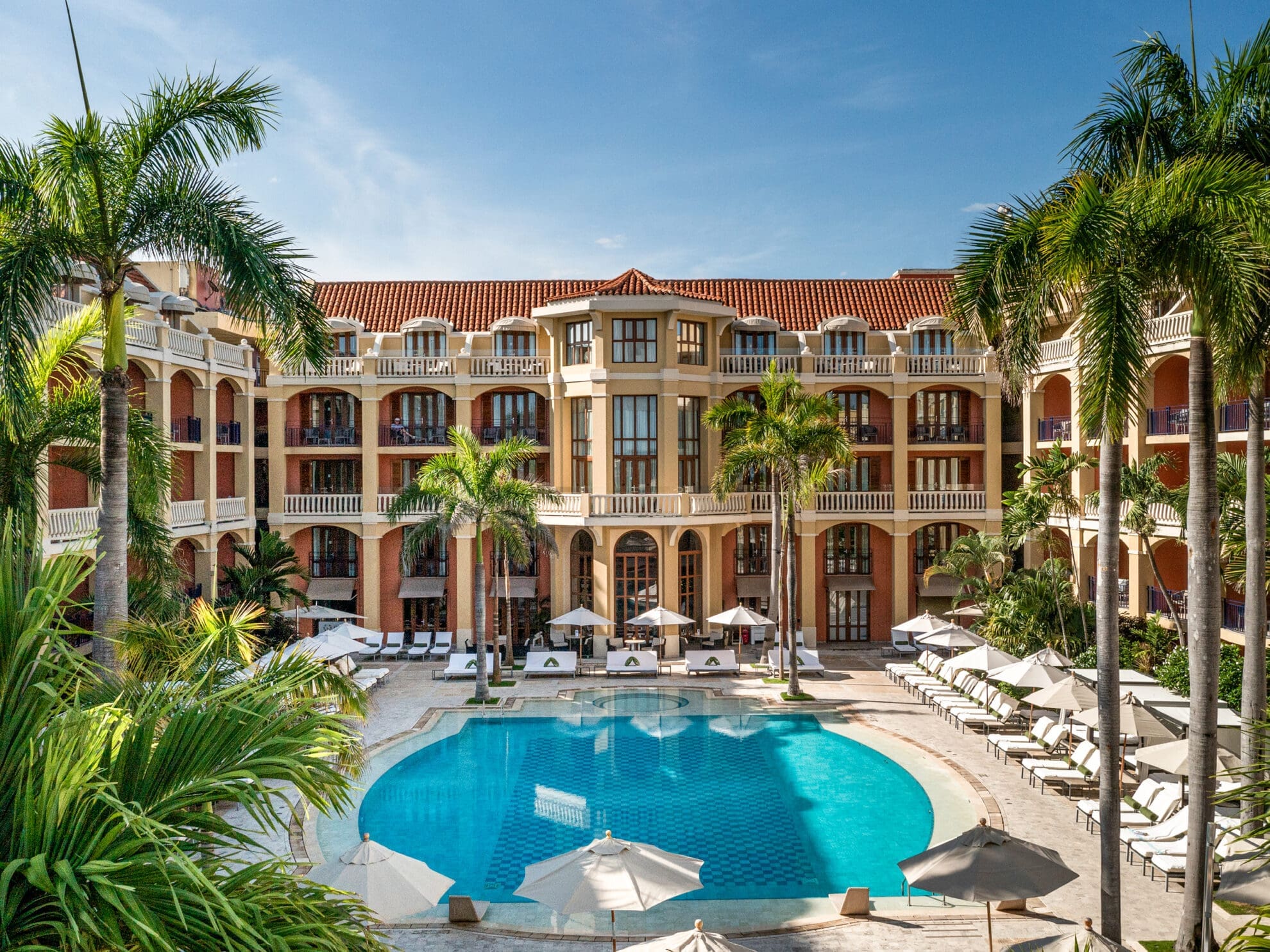 Entre les rues pavées et les épais remparts, les palais andalous et les maisons multicolores, le cœur vibrant de Carthagène, classé Unesco, raconte cinq siècles d’histoire. La brise venue de la mer des Caraïbes ne suffit pas à rafraîchir l’atmosphère. Mais la torpeur n’empêche pas les anciens de jouer aux échecs, les vendeurs à la criée de donner de la voix, aux abords du Sofitel Legend Santa Clara. Son entrée est discrète, une simple double porte en ferronnerie percée dans une façade ocre orange. Dans le lobby, le superbe plafond en bois date de la pose de la première pierre, en 1621, de ce couvent destiné alors à accueillir l’ordre des Clarisses. La monumentale bâtisse deviendra ensuite un hôpital, une prison, une faculté de médecine, les ateliers de l’école des Beaux-Arts, le siège de la ligue départementale de baseball… Entre-temps, en 1929, elle s’agrandit avec une nouvelle aile au style néoclassique. En 1995, elle est enfin restaurée, transformée en hôtel, et en 2012, elle prend son nom actuel : Sofitel Legend Santa Clara.