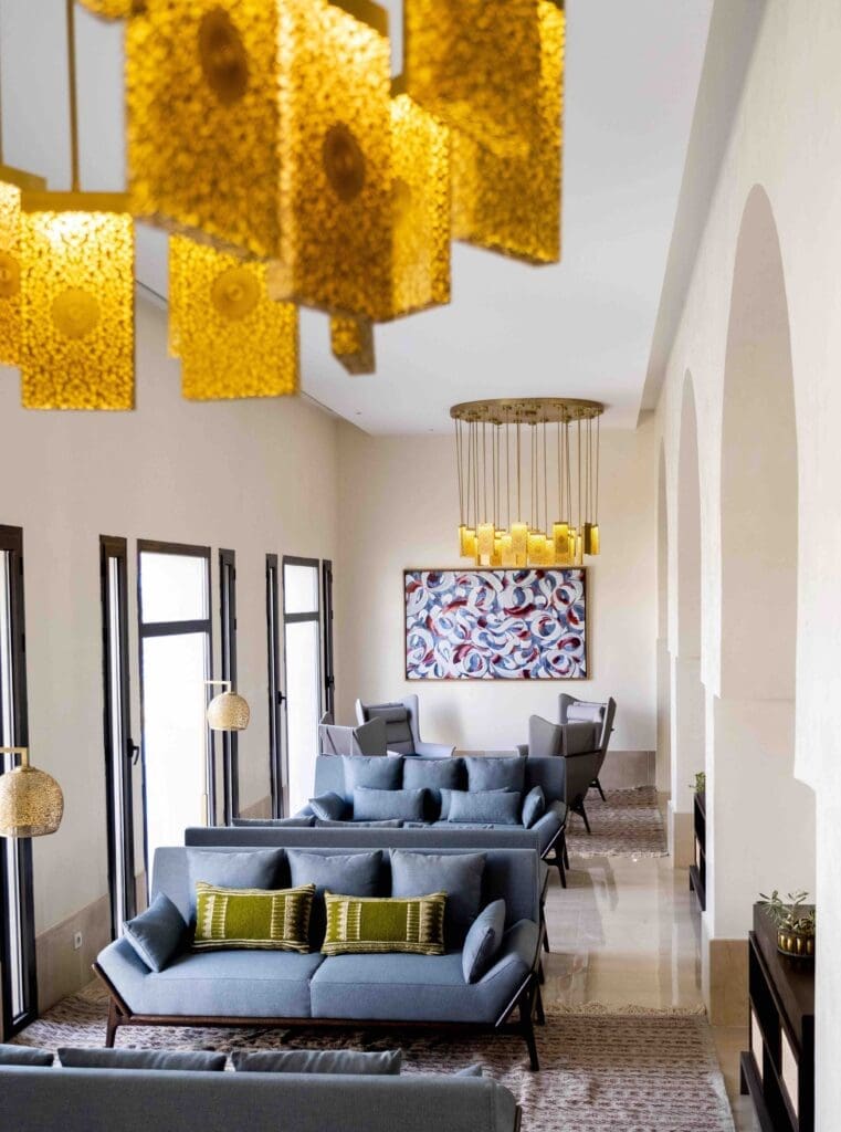 En acquérant, pour construire son 5-étoiles sudiste, à 3 kilomètres de Douz, 14 hectares de dune d’où jaillit une source, le groupe Cenizaro participe à la renaissance et à la mise en lumière de cette culture ancestrale. The Residence n’est pas un hôtel planté dans le désert, mais un hôtel partie prenante du désert. Il s’y inscrit, s’inspire de son artisanat, de son art, de ses coutumes, de sa cuisine. Ses 50 villas blanches éparpillées sur la propriété, dont les plantes et arbres encore en devenir délimitent des espaces privés avec ou sans piscine, évoquent les campements berbères. Le cabinet HBA/Hirsch Bedner Associates a dessiné le mobilier semblable à celui des maisons des riches marchands, mixant cuir, bois, cuivre. Ses équipes ont chiné les tapis margoum en laine, fixé sous verre les châles bakhnoug, noirs des célibataires, rouges des femmes mariées, les accrochant à côté d’œuvres de jeunes peintres tunisiens pour personnaliser chaque villa.