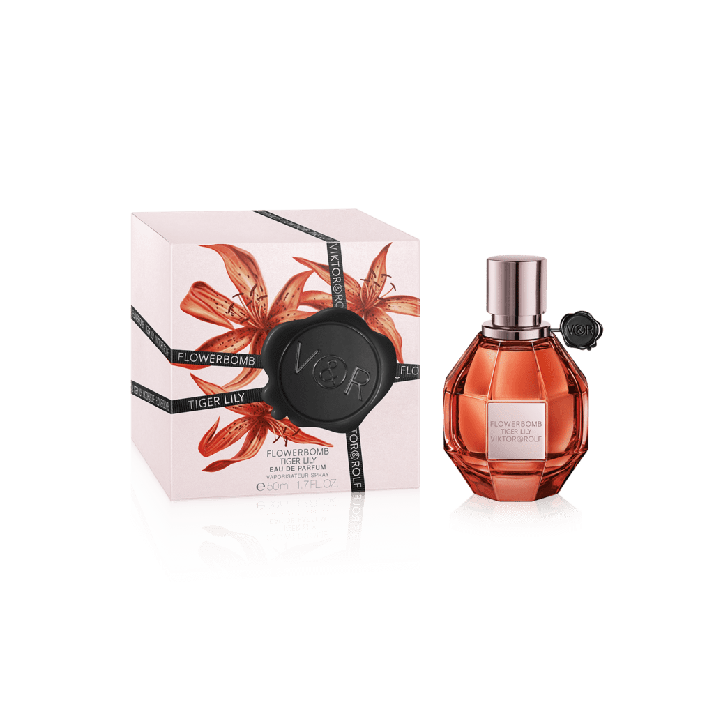 “Flowerbomb Tiger Lily” de Viktor&Rolf, déclinaison exotique du mythique “Flowerbomb”, fragrance solaire, addictive, qui s’ouvre sur un accord de lait de coco avec en notes de cœur un bouquet floral de lys, de mangue, enveloppé de benjoin, pour une sensualité brûlante. »