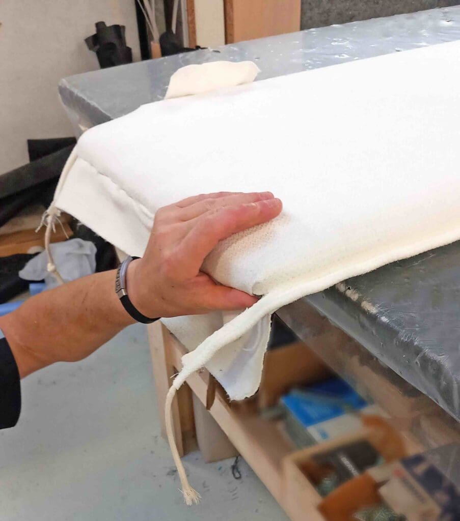 La collection de têtes de lit « Olivier Toulouse x Grand Litier » comprend six modèles aux noms qui invitent à l’évasion : Majorque, Minorque, Féroé, Tahiti, Manhattan et Victoria. Comme tous les produits Grand Litier, ils sont fabriqués dans une entreprise française, en l’occurrence Decosom, en Bretagne. Ceux-ci sont en bois contreplaqué, métal peint noir ou ivoire, et couverts d’un tissu tendu ou capitonné. Quatre duos de coloris de tissus sont proposés, mais il est également possible, sur demande, de choisir la référence d’un éditeur en particulier.