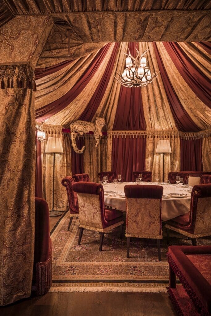 Tissu Tassinari & Chatel pour les salons de Maison Revka, table slave à Paris, imaginés par Laleh Amir Assefi. © DR